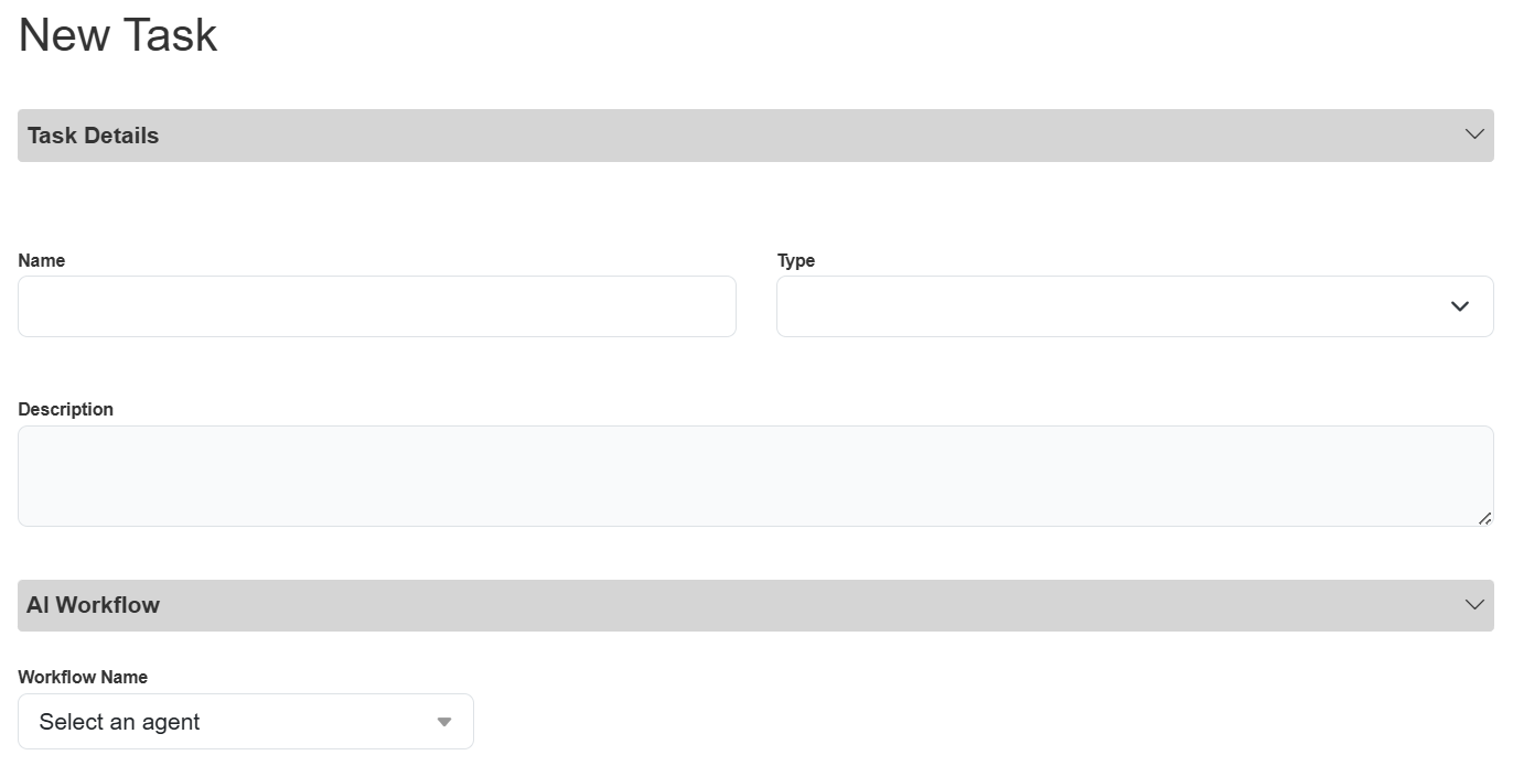 From the Tasks page, click the Add button on the far right, above the table. The New Task pop-up appears.