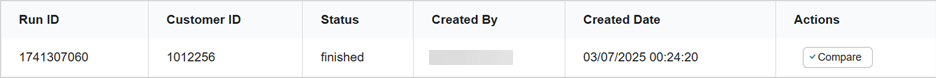 Note: Make sure the Status is “finished”. If the Status is “started” the task hasn’t finished yet. If the Status is “error”, there are no metrics for the attempt and the Compare button will not appear.
