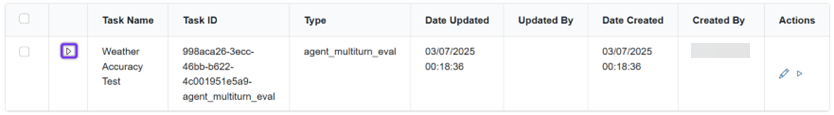 In the Actions column of the Tasks table, click the play button for the task you want to run.