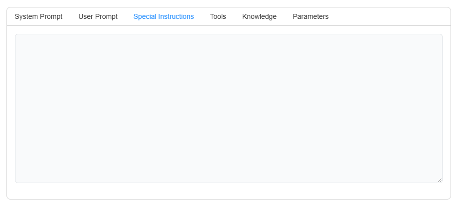 Acting as a sort of “assistant message” Special Instructions are more heavily weighted when the LLM is determining the agent’s response. The goal is for Special Instructions to reinforce important business or logic rules, response constraints, or response formatting for your agent. This ensures consistency and accuracy in the agent’s responses.
