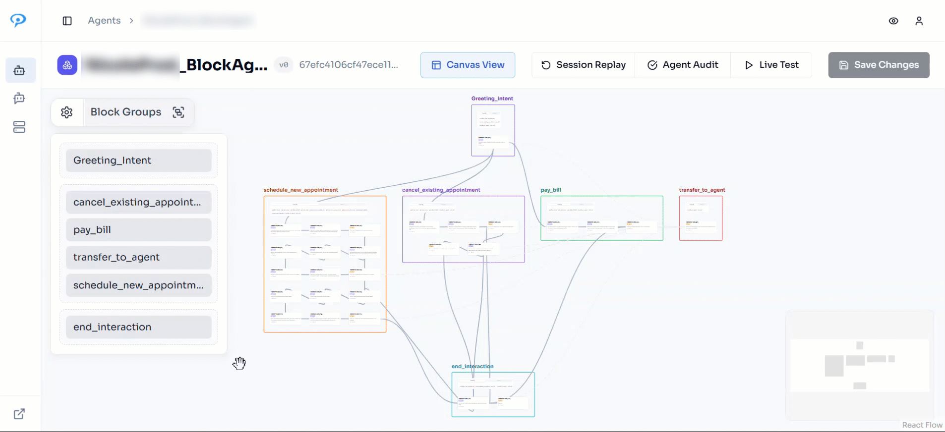The AI Studio Canvas View is a powerful resource for understanding and testing your Block Agents. From the canvas you can: