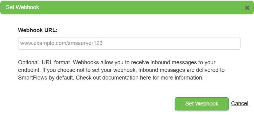 Note: Your numbers must have messaging activated before you can add a webhook.