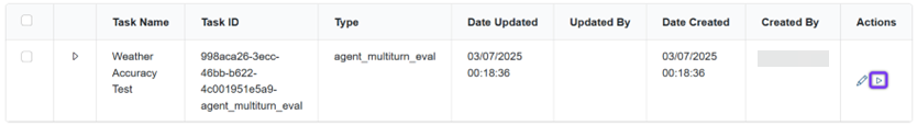 In the Actions column of the Tasks table, click the play button for the task you want to run.