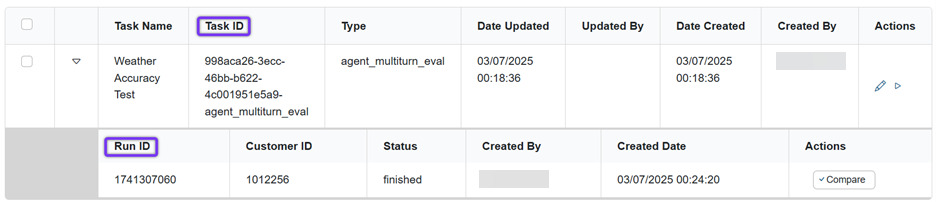 Note: Make sure the Status is “finished”. If the Status is “started” the task hasn’t finished yet. If the Status is “error”, there are no metrics for the attempt and the Compare button will not appear.
