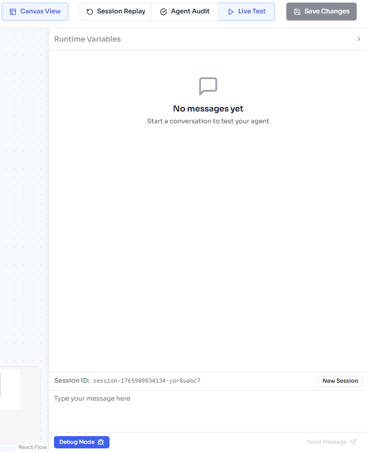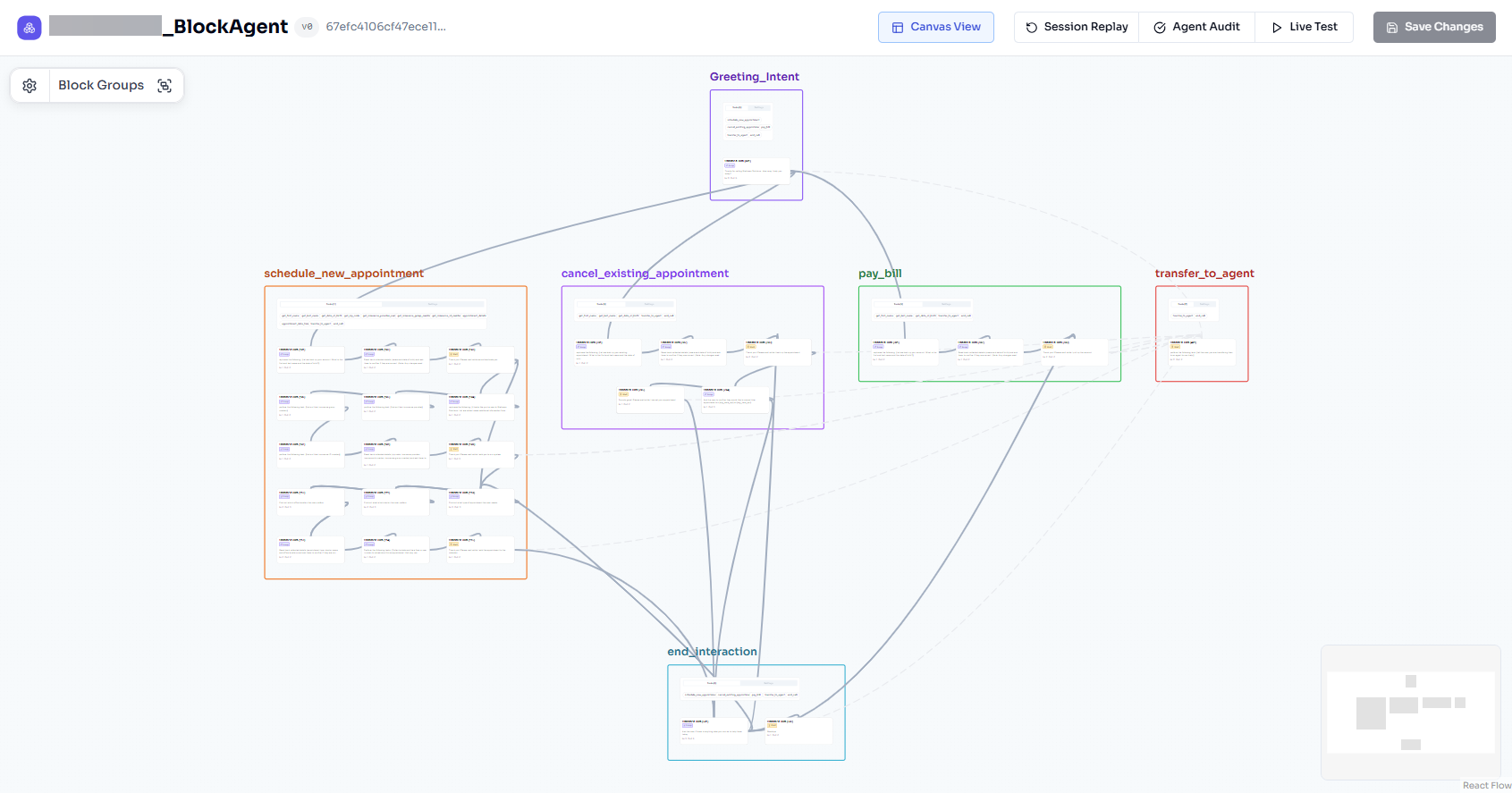 The AI Studio Canvas View is a powerful resource for understanding and testing your Block Agents. From the canvas you can: