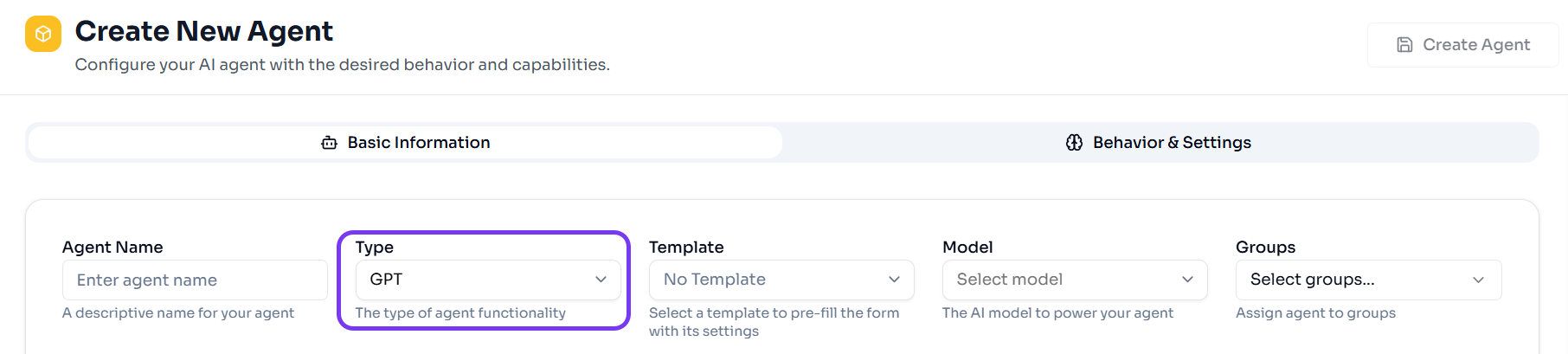Depending on which Agent Type you select, the mechanics of how it responds to a user message will vary.