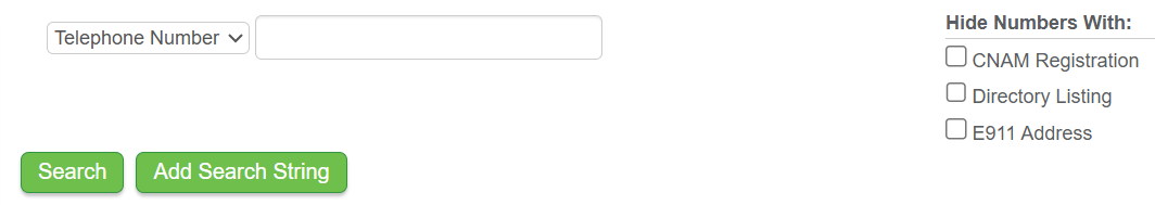 Use the search feature located at the top of the page to narrow down the list to those numbers you want to work with. The menu provides several ways to search.